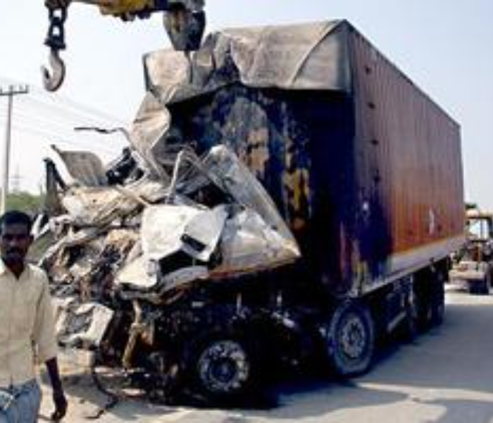 ಬಸ್‌ವೊಂದಕ್ಕೆ ಲಾರಿ ಡಿಕ್ಕಿಯಾಗಿ ಬೆಂಕಿ ಹೊತ್ತಿದ ಕಾರಣ 10 ಕ್ಕೂ ಹೆಚ್ಚು ಮಂದಿ ಸಜೀವ ದಹನ..!